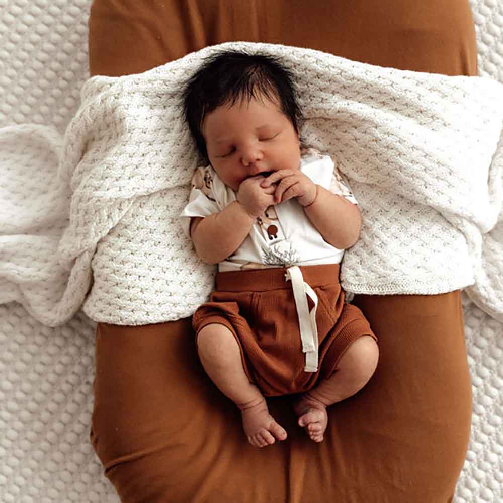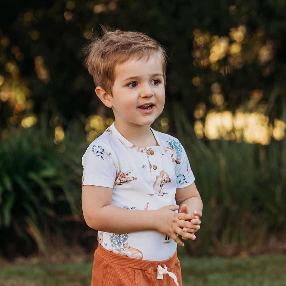 Soft and stretchy, our bodysuits are easy-care and coordinate well with our pants and shorts. Our bodysuits are also really comfortable to sleep in. All Snuggle Hunny clothing is made with GOTS Certified Organic Cotton CU 1182228.