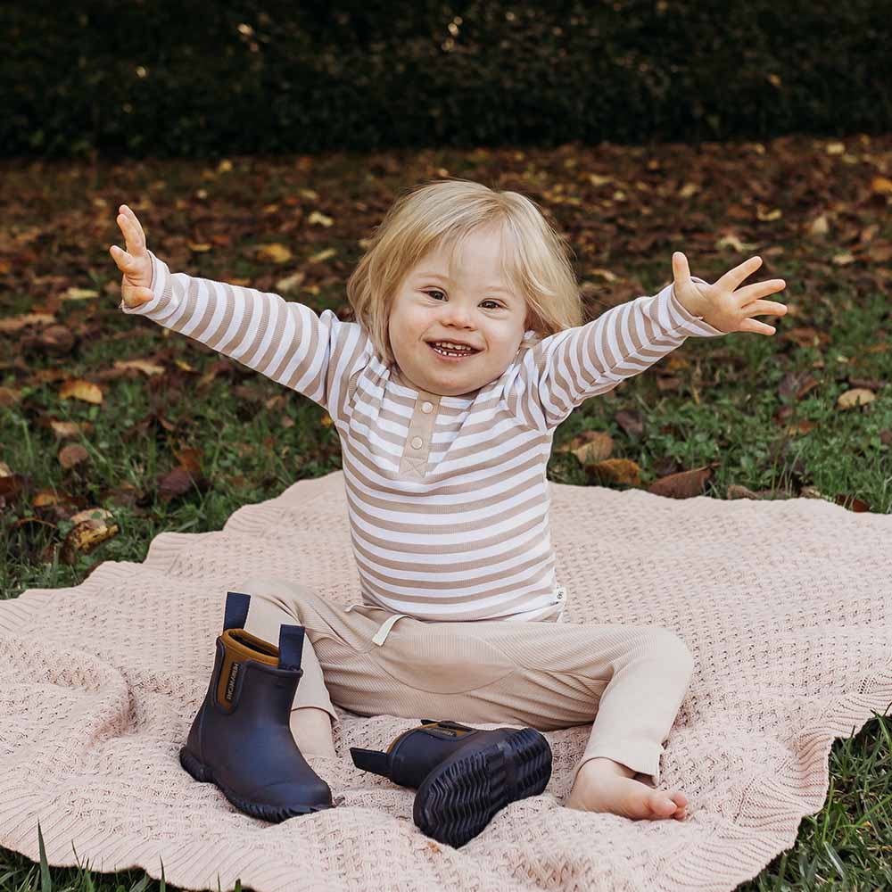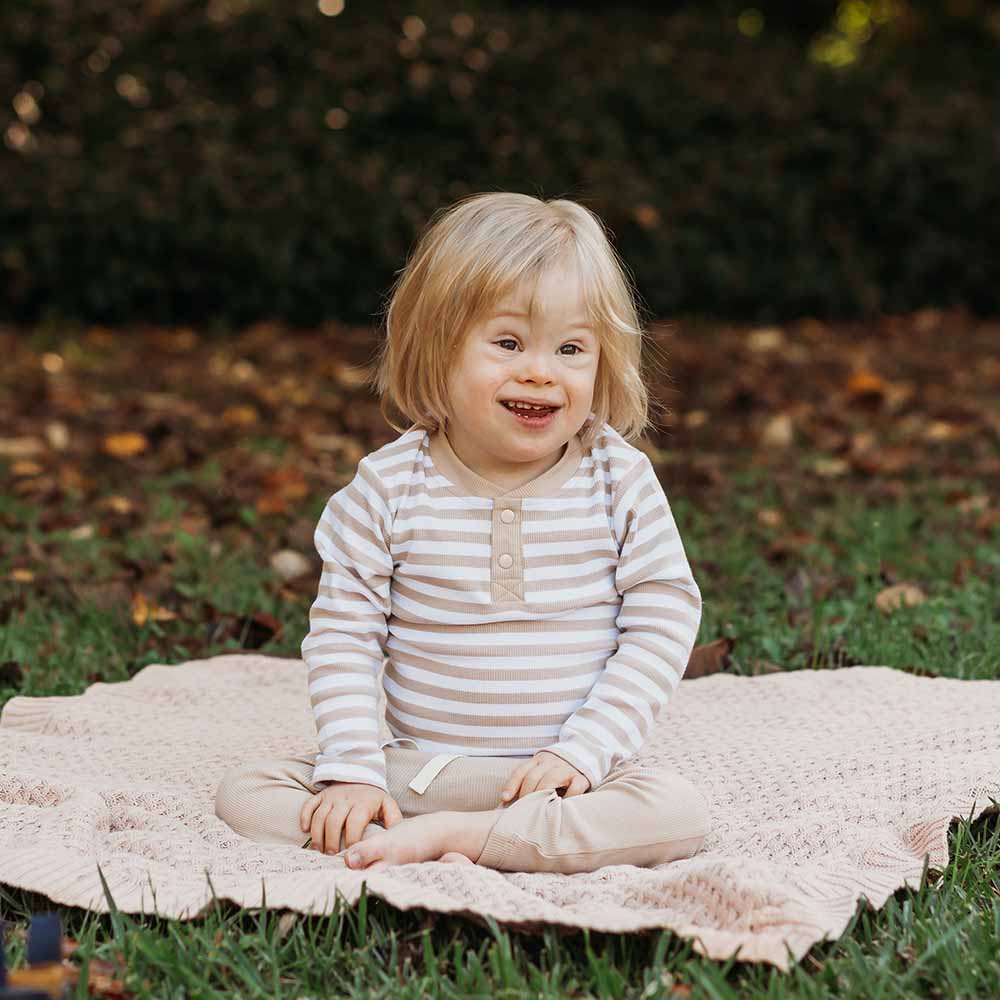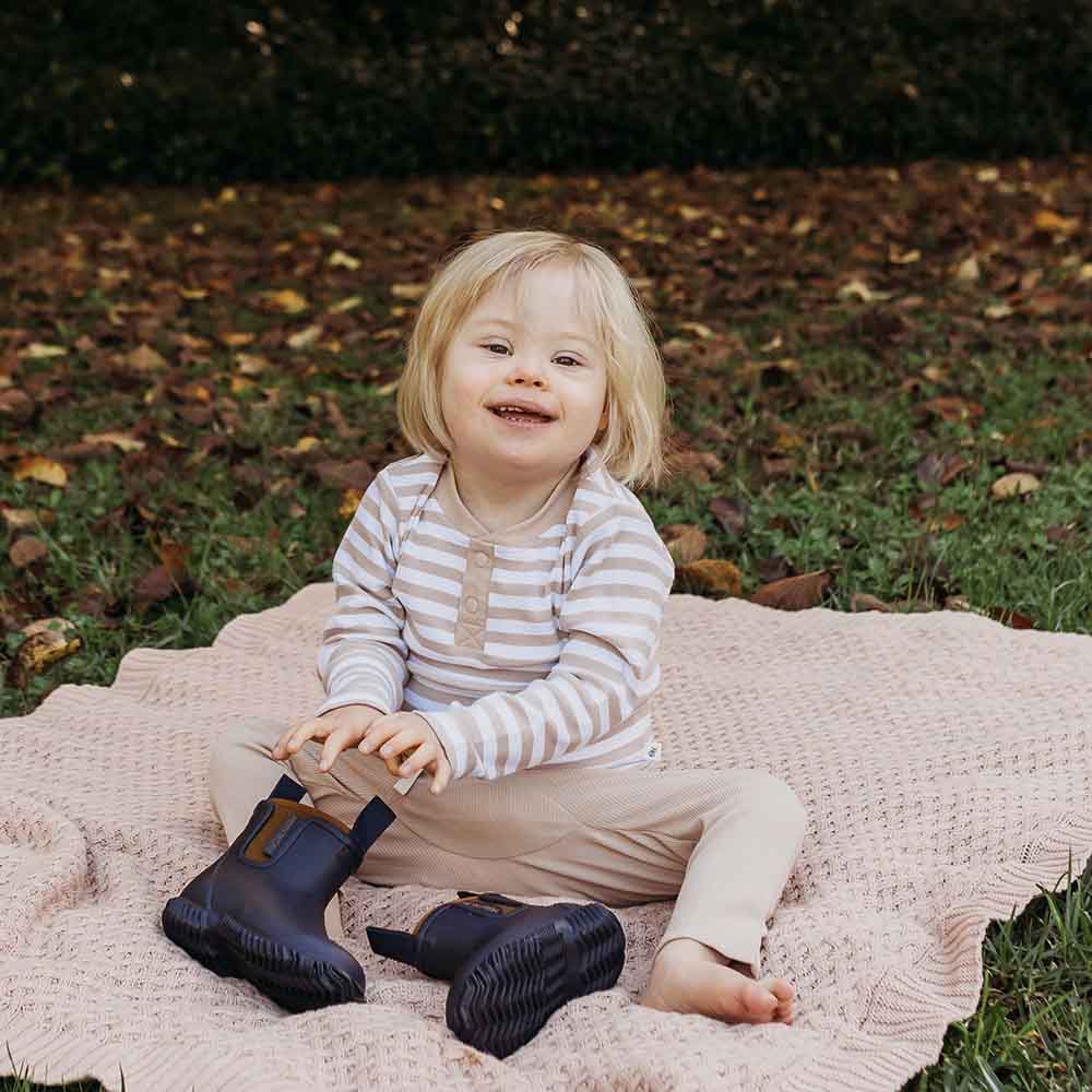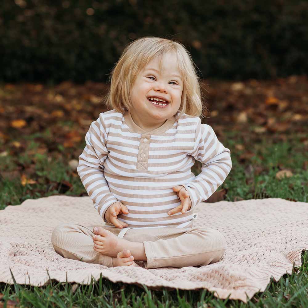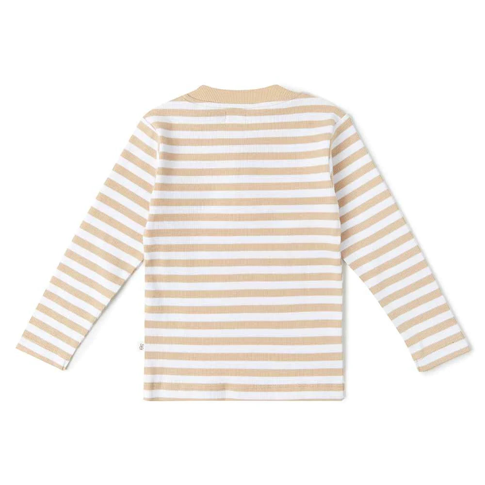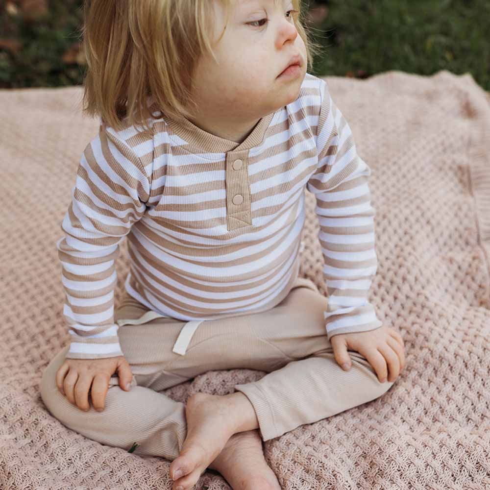 Our long sleeve Hunny Henleys are practical whilst being very stylish and coordinate perfectly with our pants and shorts - mix and match is the aim of the day here! Our Pebble Stripe Henley looks beautiful with our Pebble pants, Chocolate pants, sage pants, the list goes on. Made with organic cotton rib they are easy to wear and comfy for bub. They have two snap buttons making it easy to get on and off bub. All Snuggle Hunny clothing is made with GOTS Certified Organic Cotton CU 1182228.