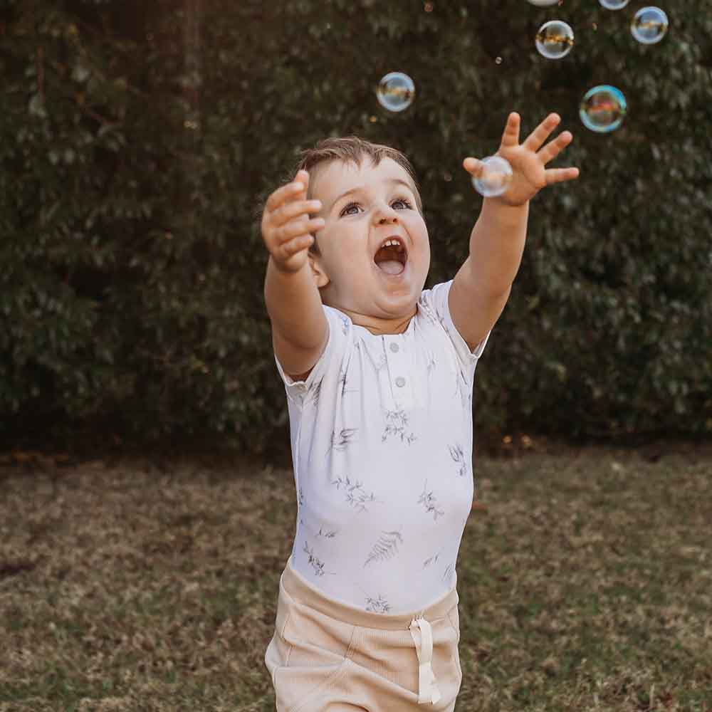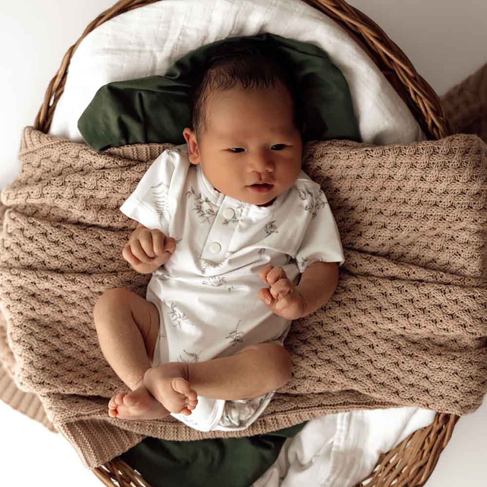 Soft and stretchy, our bodysuits are easy-care and coordinate well with our pants and shorts. Our bodysuits are also really comfortable to sleep in. All Snuggle Hunny clothing is made with GOTS Certified Organic Cotton CU 1182228.