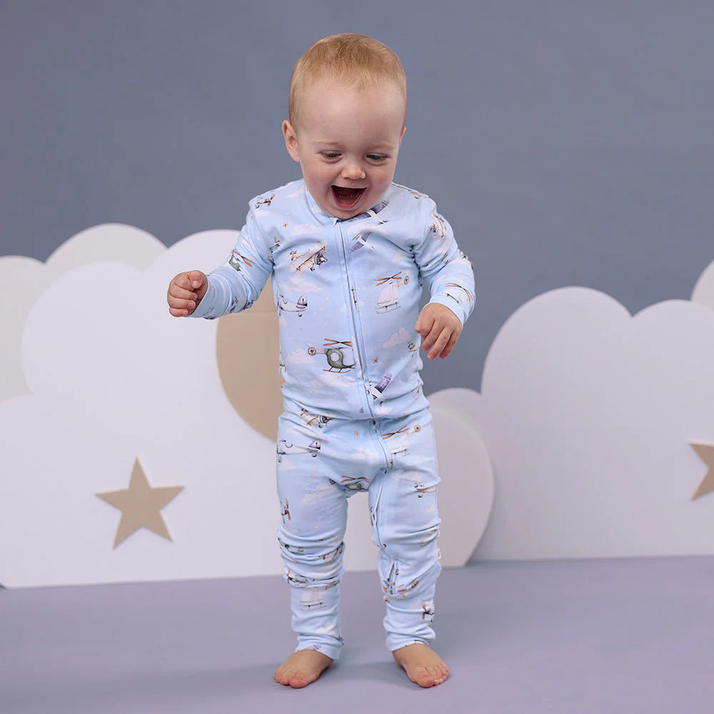 This design includes a two way zip, making it easy to get bub in and out for naptime and nappy change. Foldable hand mittens are included for newborn to 6 months and help stop little nails from scratching and also keep hands warm when the weather is cool. Bub can wear the mittens open or closed. For sizes from 6 months upwards, the mittens are replaced with a stylish cuff. Foot mittens are also an important feature and these are included on all sizes. Who doesn’t love to tuck in those little feet for bedtime to keep warm?