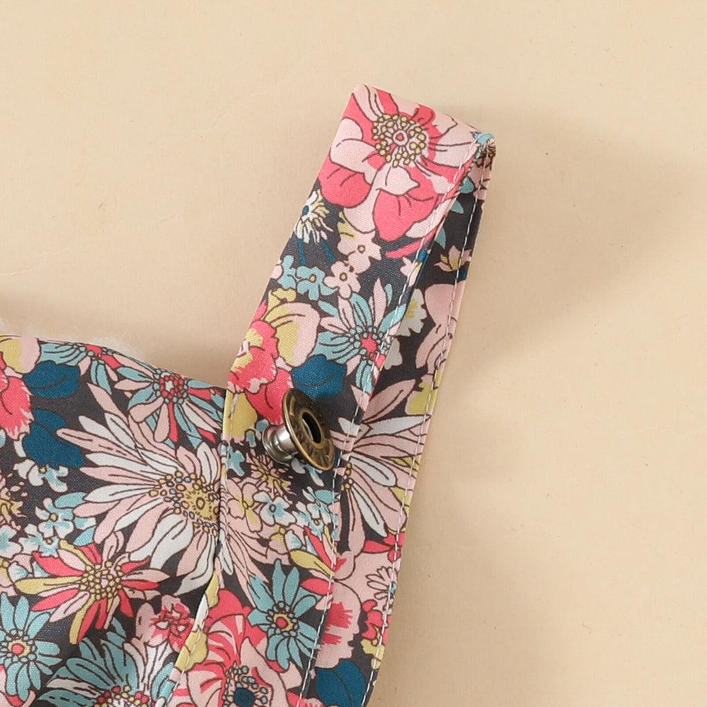 Girls Three Piece Pink Romper And Floral Skirt Overall Set