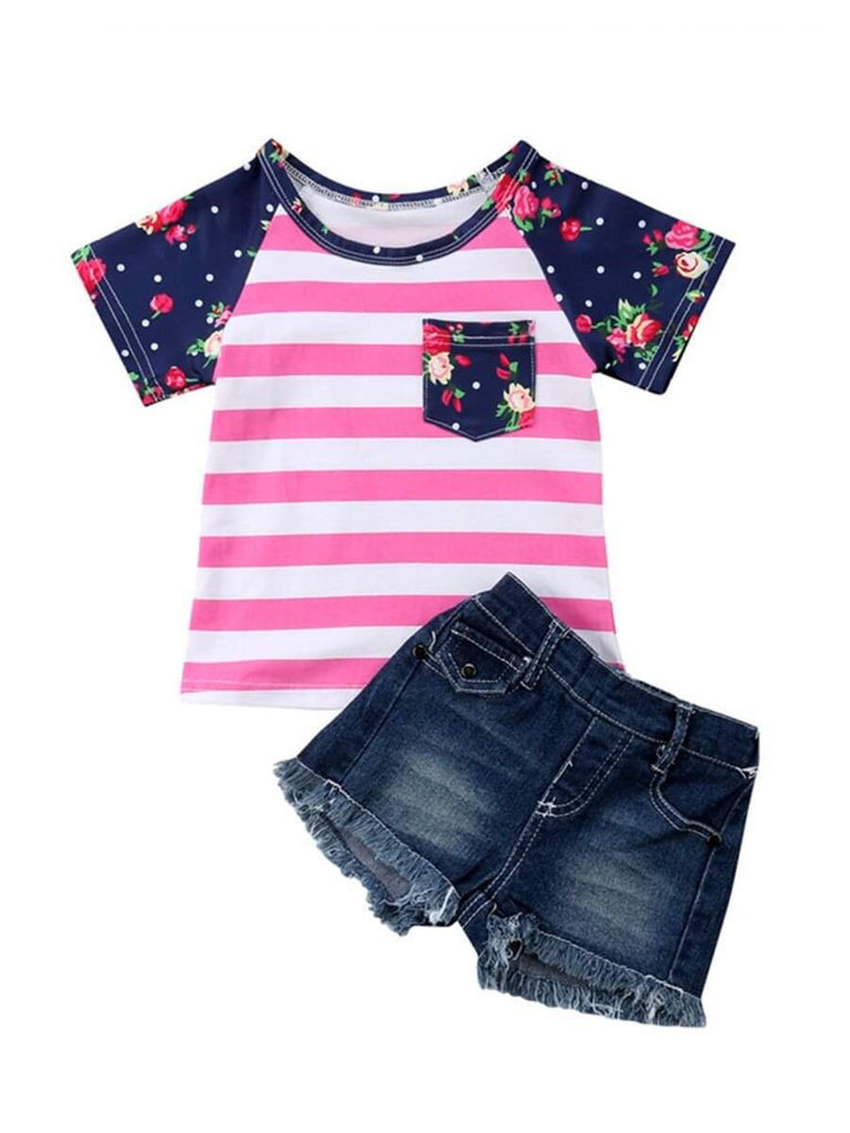 Girls Pink And Floral Top And Denim Pant Set - is backordered and will ship as soon as it is back in stock.