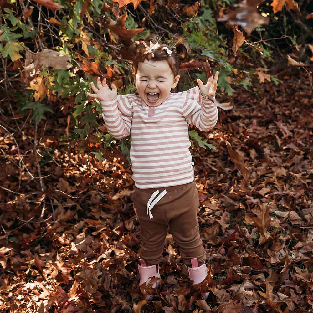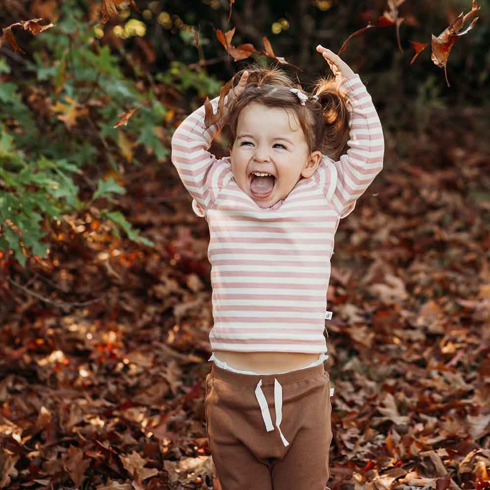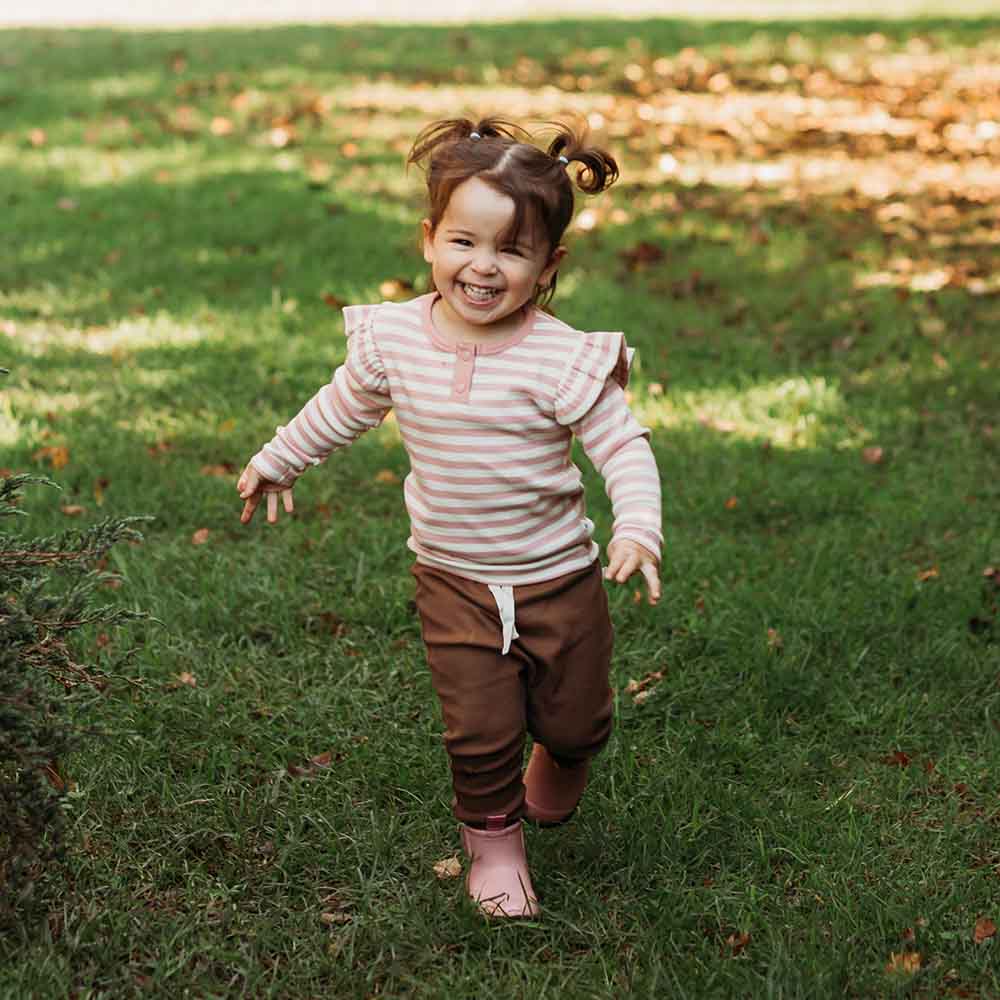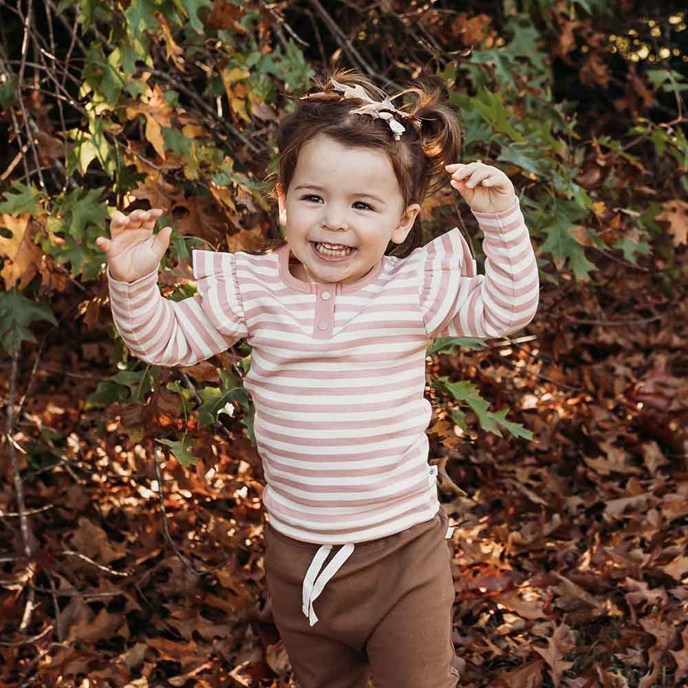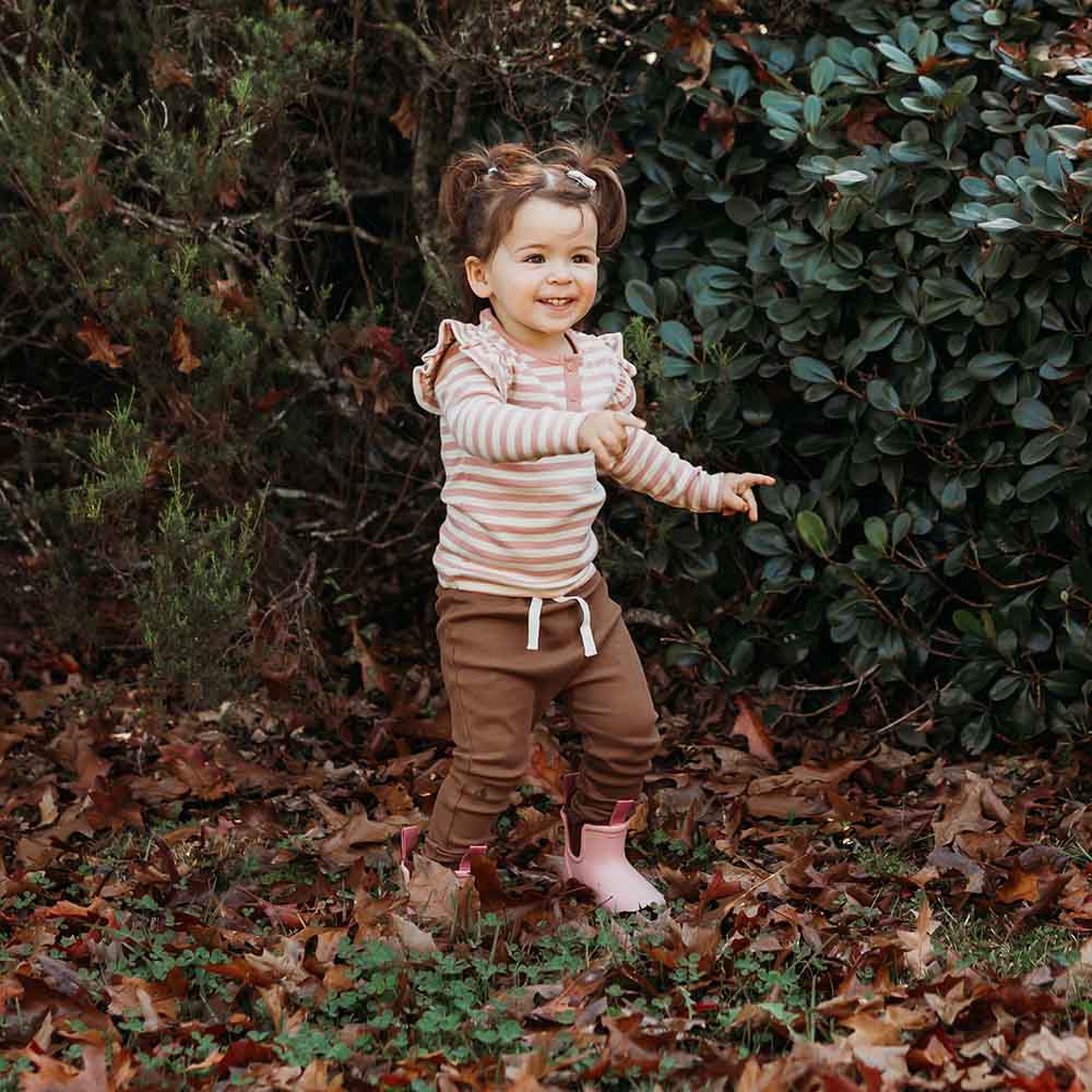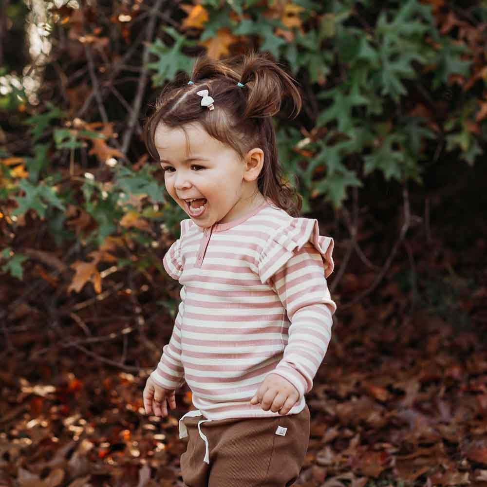 Our long sleeve Hunny Henleys are practical whilst being very stylish and coordinate perfectly with our pants and shorts - mix and match is the aim of the day here! Our Rose Stripe Henley looks beautiful with our Pebble pants, Chocolate pants, Rose pants, the list goes on. The Rose Stripe Henley comes with Frill detail on the shoulders. Made with organic cotton rib they are easy to wear and comfy for bub. They have two snap buttons making it easy to get on and off bub. All Snuggle Hunny clothing is made with GOTS Certified Organic Cotton CU 1182228.