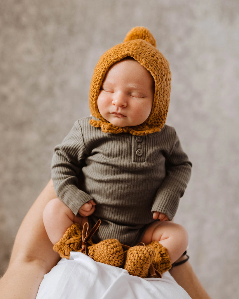 Bronze Merino Wool Bonnet & Booties Set