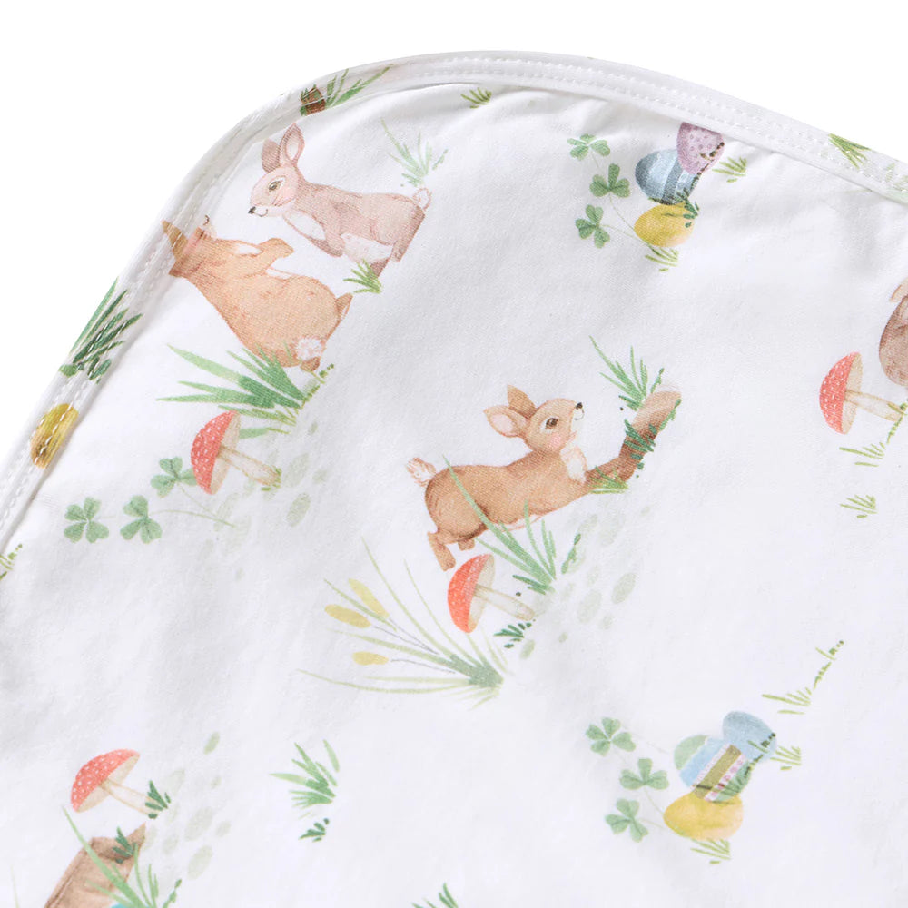 Our Snuggle Hunny organic cotton jersey wrap with matching beanie is soft, snuggly and stretches with baby. This wrap features our exclusive Snuggle Hunny Easter Bunnies design and is made with GOTS Certified Organic Cotton CU 1182228.