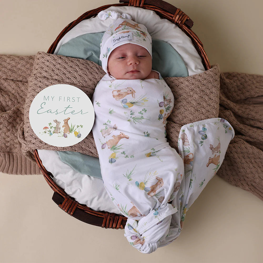 Easter Bunnies Organic Jersey Wrap & Beanie Set