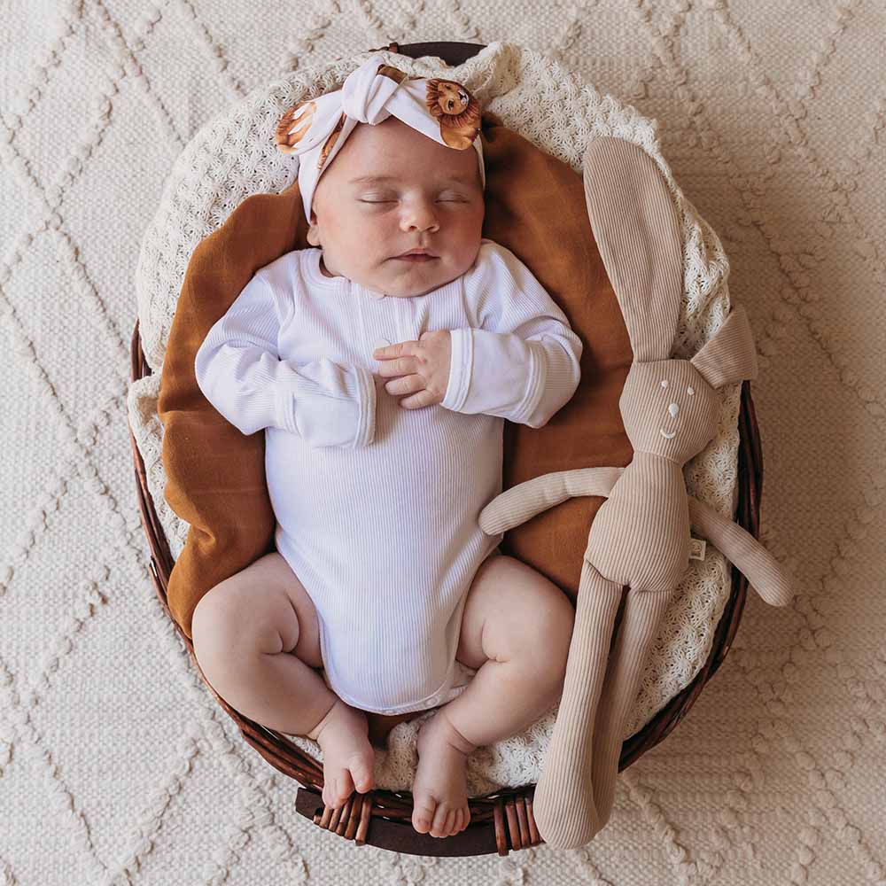 Our organic cotton Lion topknot matches beautifully with our Lion collection including wraps, dresses, growsuits and bodysuits. Made with GOTS Certified Organic Cotton CU 1182228.