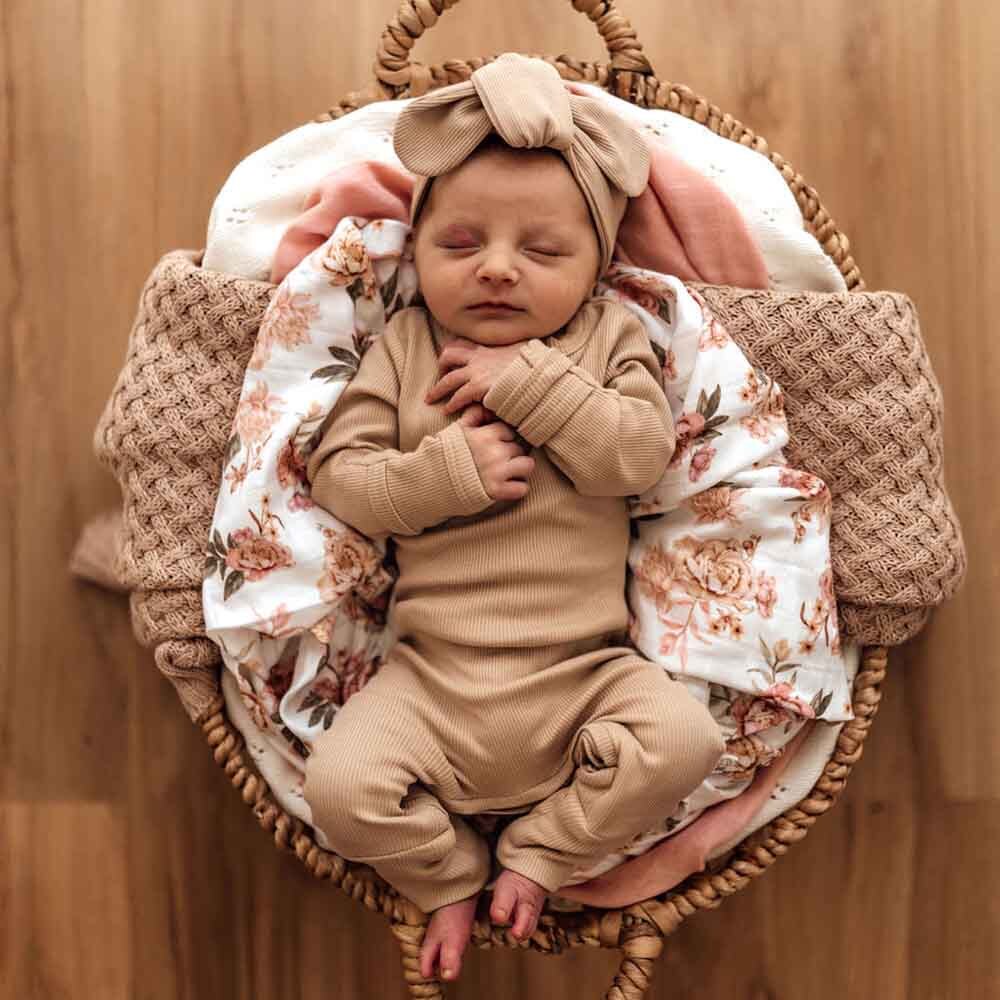 Our organic cotton Pebble ribbed topknot matches beautifully with our Pebble rib range including growsuits and bodysuits. Made with GOTS Certified Organic Cotton CU 1182228.