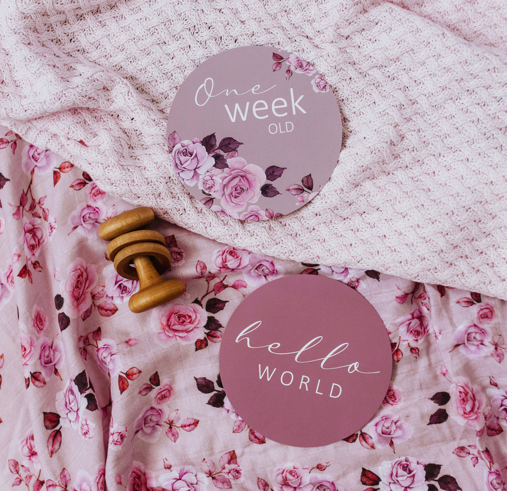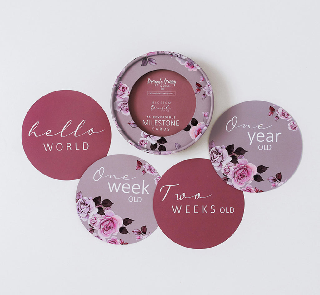Capture your baby's milestone moments and document their 'firsts' in photographs to treasure for a lifetime with our Blossom & Dusk Milestone Cards.