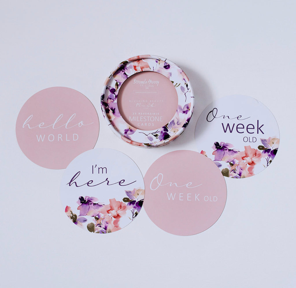 Capture your baby's milestone moments and document their 'firsts' in photographs to treasure for a lifetime with our Blushing Beauty & Musk Pink Milestone Cards.