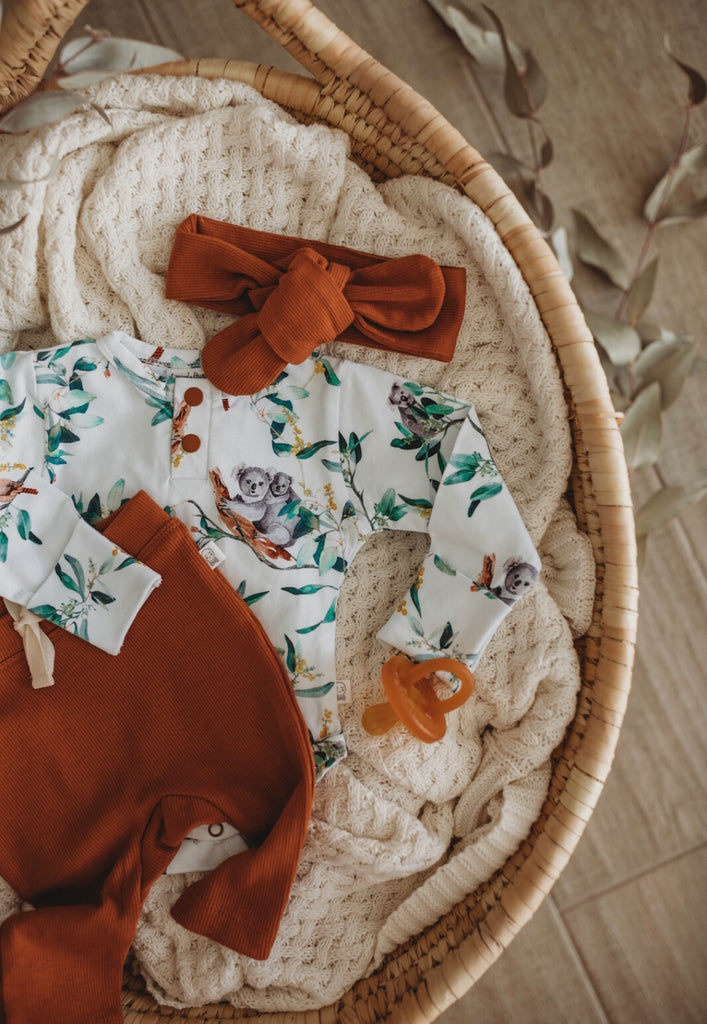 Comfortable enough for sleep, you can transition to socialite in an instant. Add a piece of coordinating headwear and you are ready to go! Used for the most stylish babes, our baby bodysuits are suitable for loungewear, daywear, birth announcement photos and even baby gifts. Our bodysuits make your bub’s wardrobe beautiful.