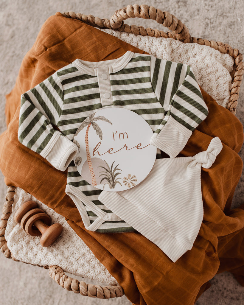 Comfortable enough for sleep, you can transition to socialite in an instant. Add a piece of coordinating headwear and you are ready to go! Used for the most stylish babes, our baby bodysuits are suitable for loungewear, daywear, birth announcement photos and even baby gifts. Our bodysuits make your bub’s wardrobe beautiful.