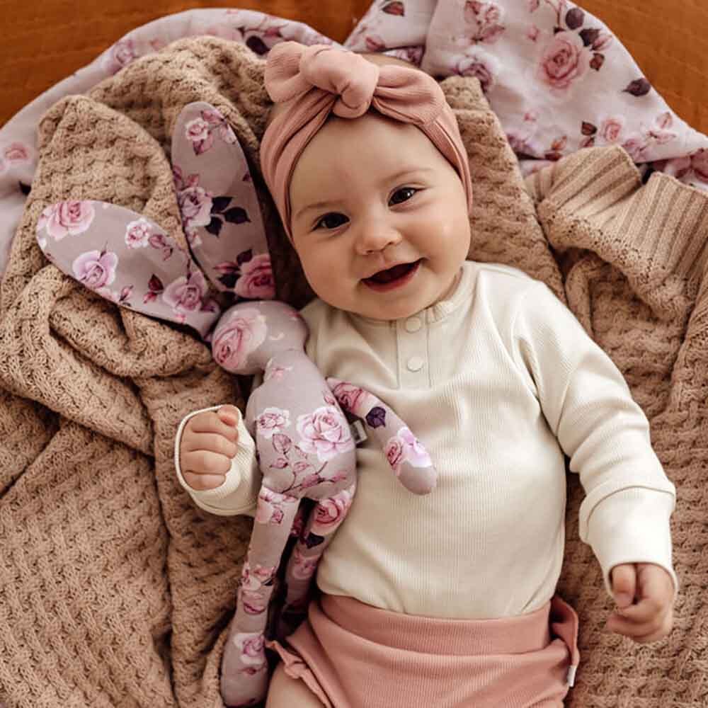 This gorgeous bunny is about to become your child's best friend. Made with organic cotton it is soft to the touch and perfect to calm bub. Available in many prints and also in cotton rib which is great for those babies and toddlers who love texture.