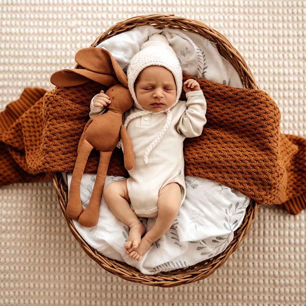 This gorgeous bunny is about to become your child's best friend. Made with organic cotton it is soft to the touch and perfect to calm bub. Available in many prints and also in cotton rib which is great for those babies and toddlers who love texture.