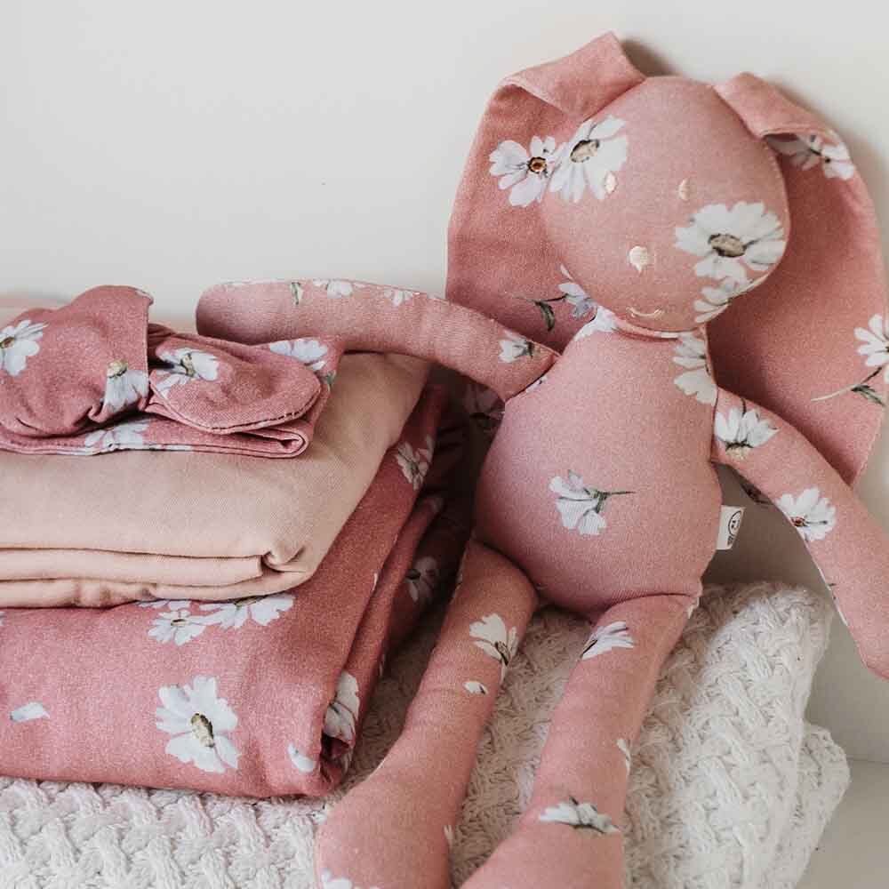 This gorgeous bunny is about to become your child's best friend. Made with organic cotton it is soft to the touch and perfect to calm bub. Available in many prints and also in cotton rib which is great for those babies and toddlers who love texture.
