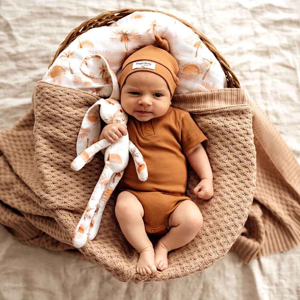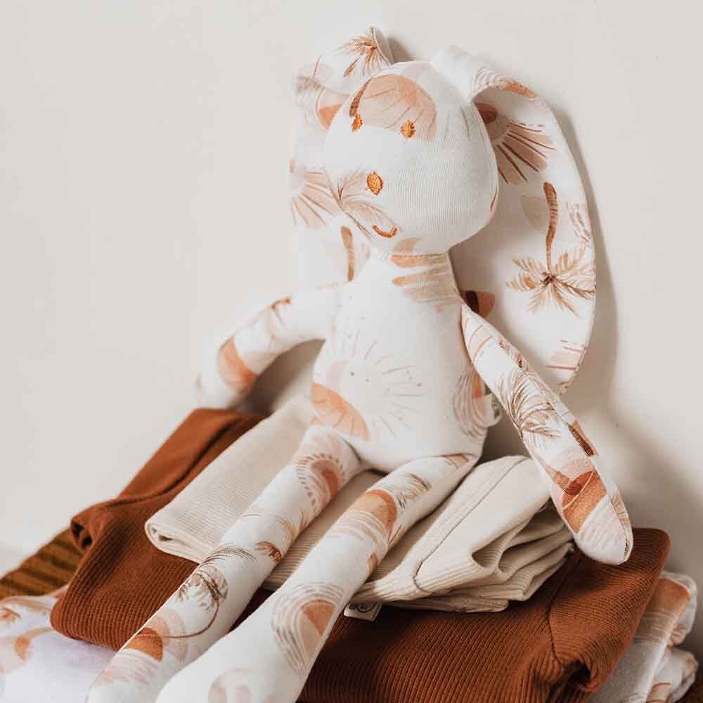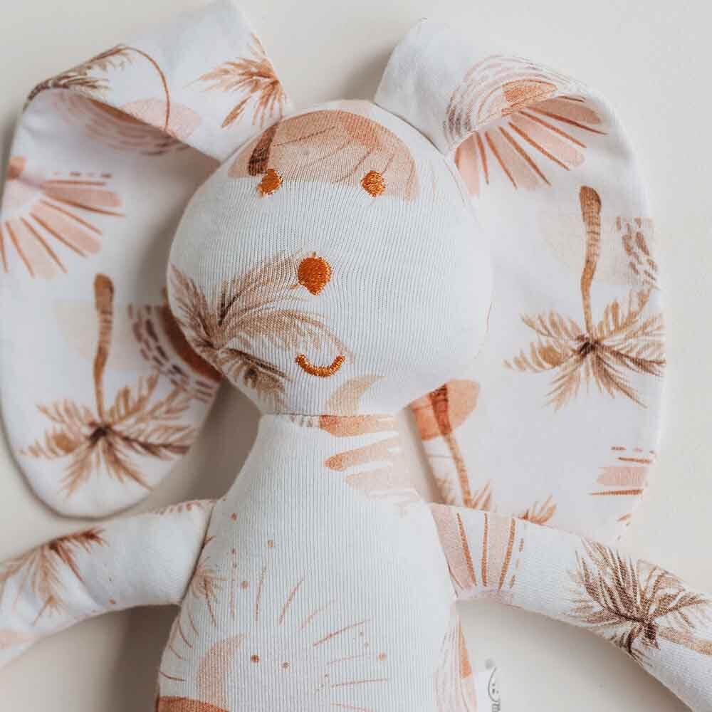 This gorgeous bunny is about to become your child's best friend. Made with organic cotton it is soft to the touch and perfect to calm bub. Available in many prints and also in cotton rib which is great for those babies and toddlers who love texture.
