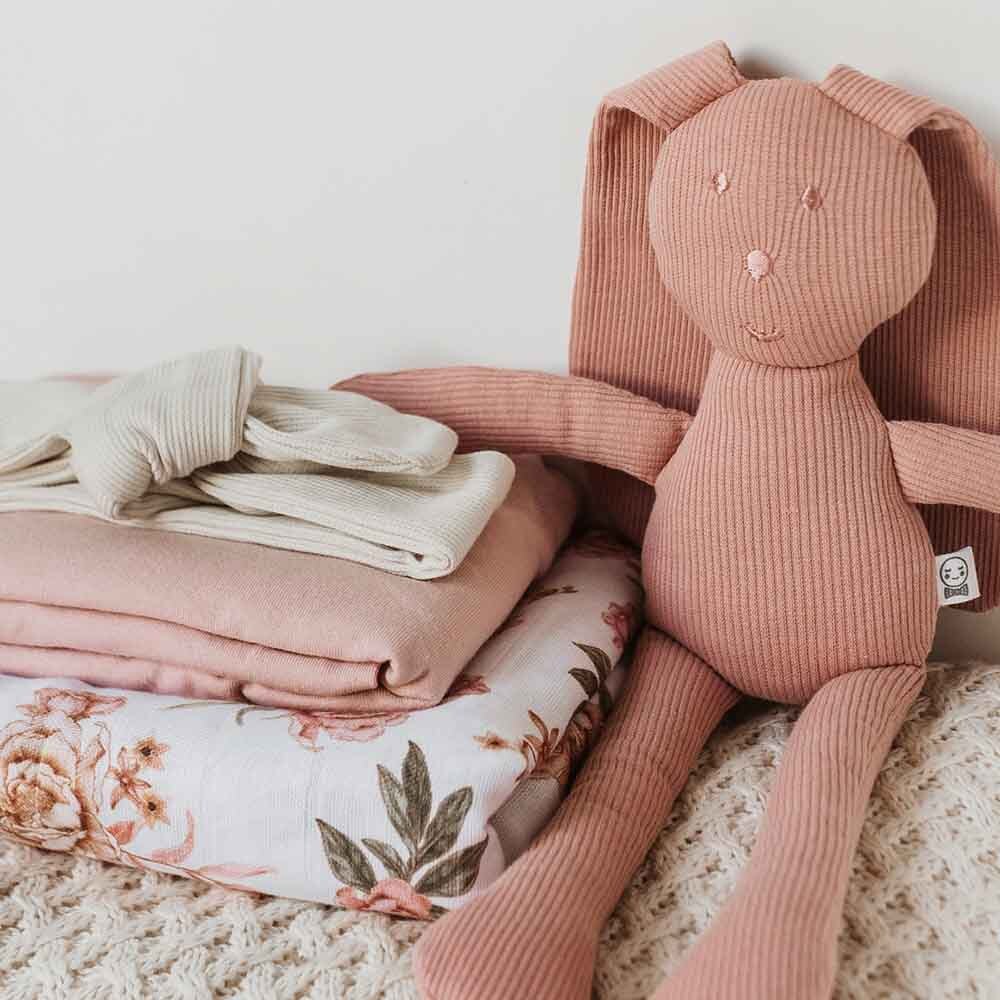 This gorgeous bunny is about to become your child's best friend. Made with organic cotton it is soft to the touch and perfect to calm bub. Available in many prints and also in cotton rib which is great for those babies and toddlers who love texture.