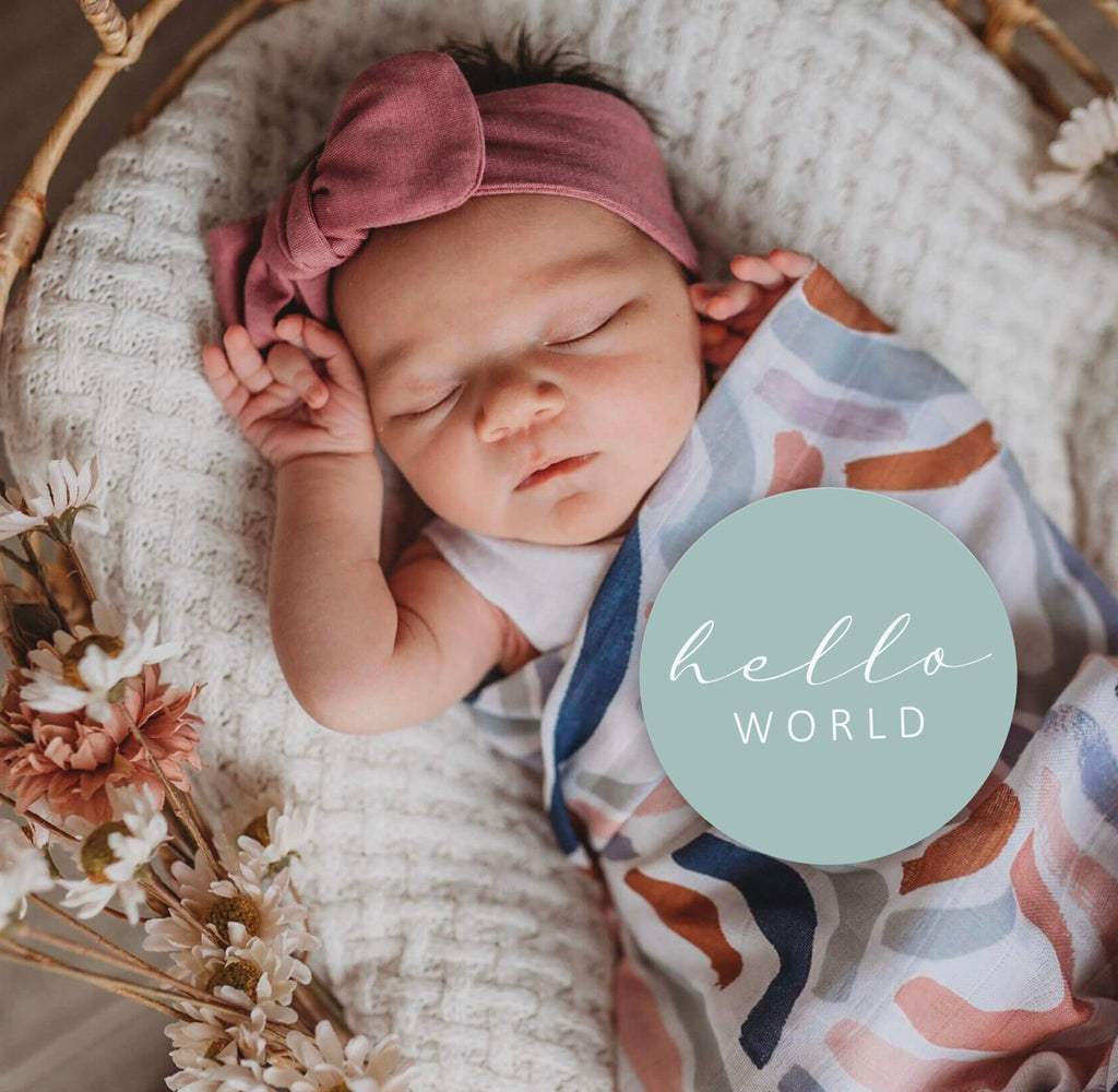 Included in this pack is the Rainbow Baby design and Sage colourway to match our existing baby swaddle wraps. This would make the perfect gift for a new baby or the expecting mum.
