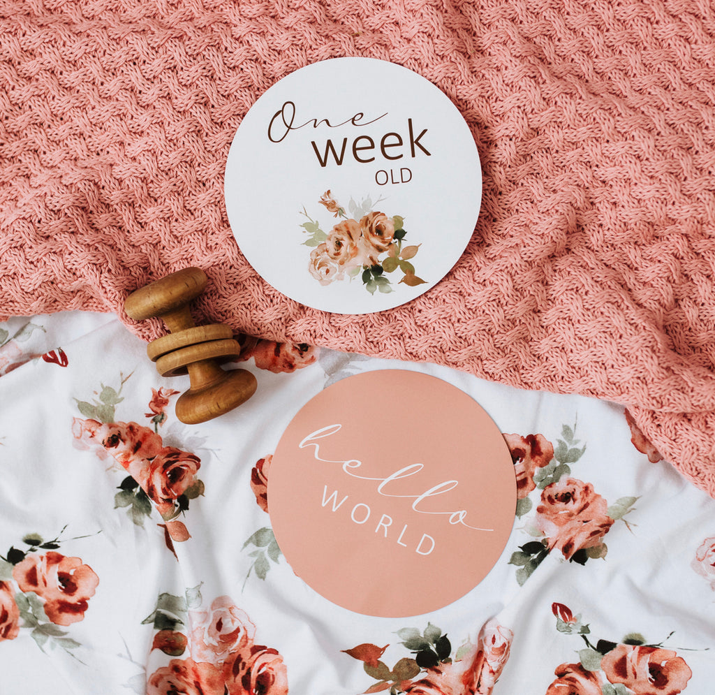 Capture your baby's milestone moments and document their 'firsts' in photographs to treasure for a lifetime with our Rosebud & Pink Sand Milestone Cards.
